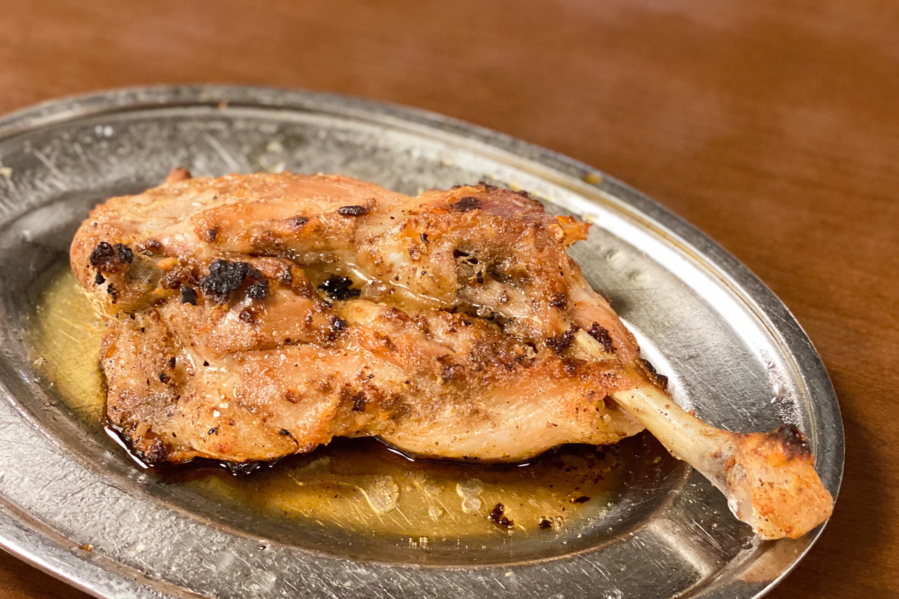 ローストされたチキンなんですけど、この味付けでこういう形態のものを「骨付鳥」と呼んでいるんです。
