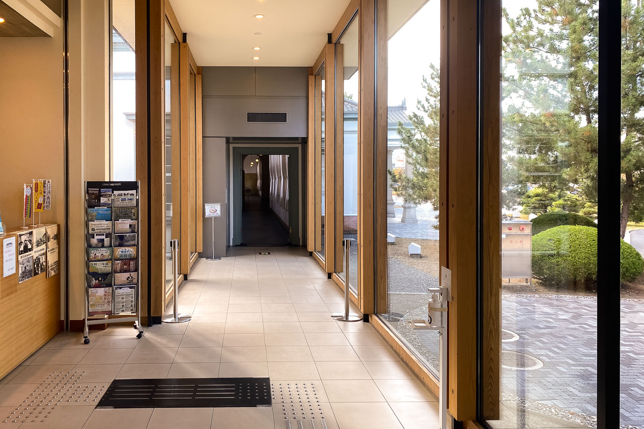 偕行社かふぇの入り口は、なだらかなスロープが設置されていて、こちらもバリアフリー設計になっています。