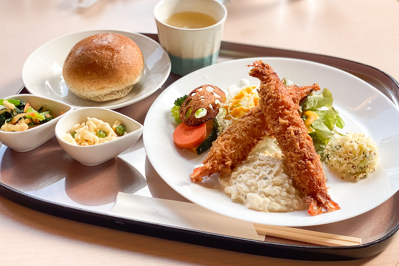 偕行社かふぇのエビフライランチはこちら。