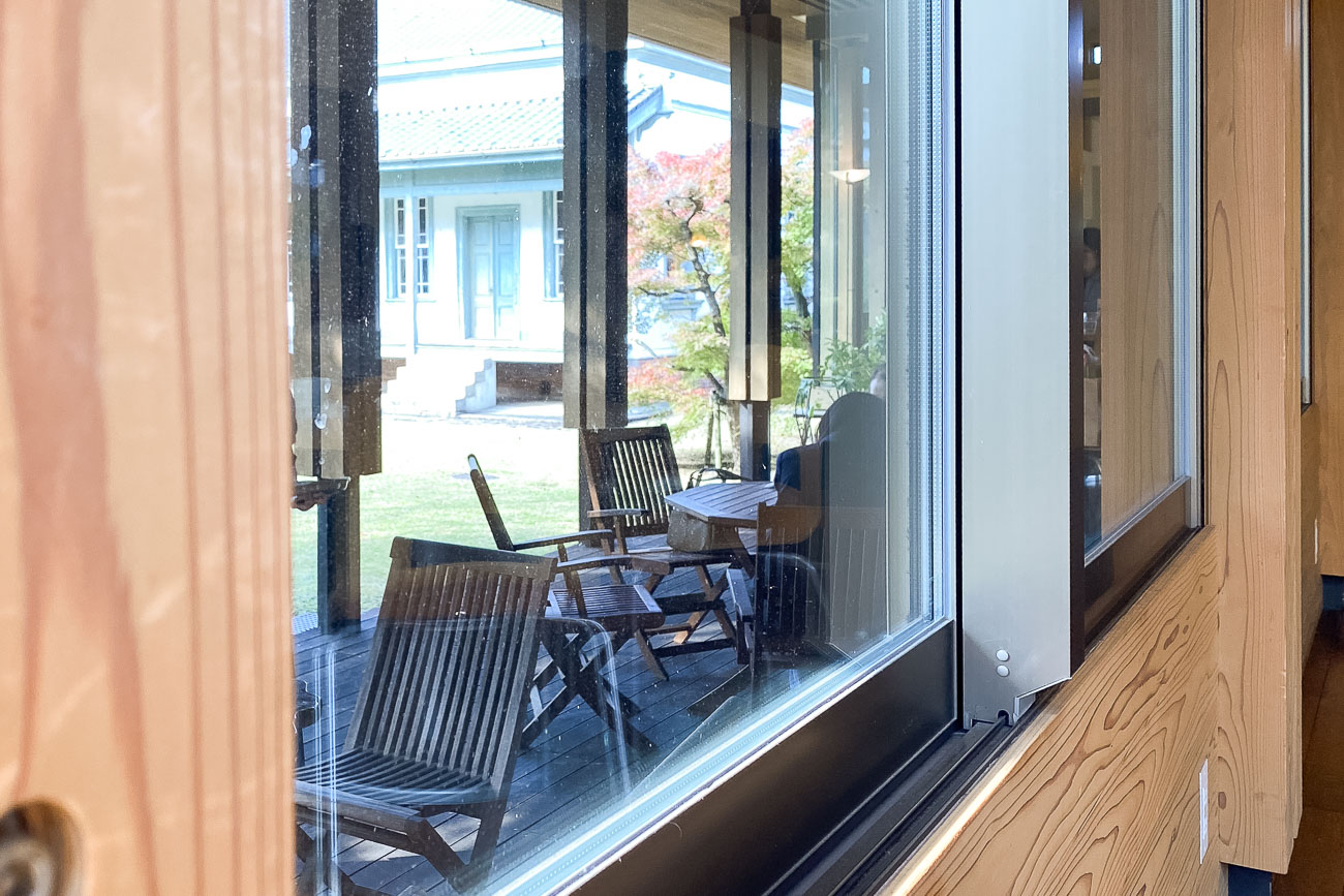そこから見える美しい中庭の景色が、さらに癒しの時間を演出していますね。