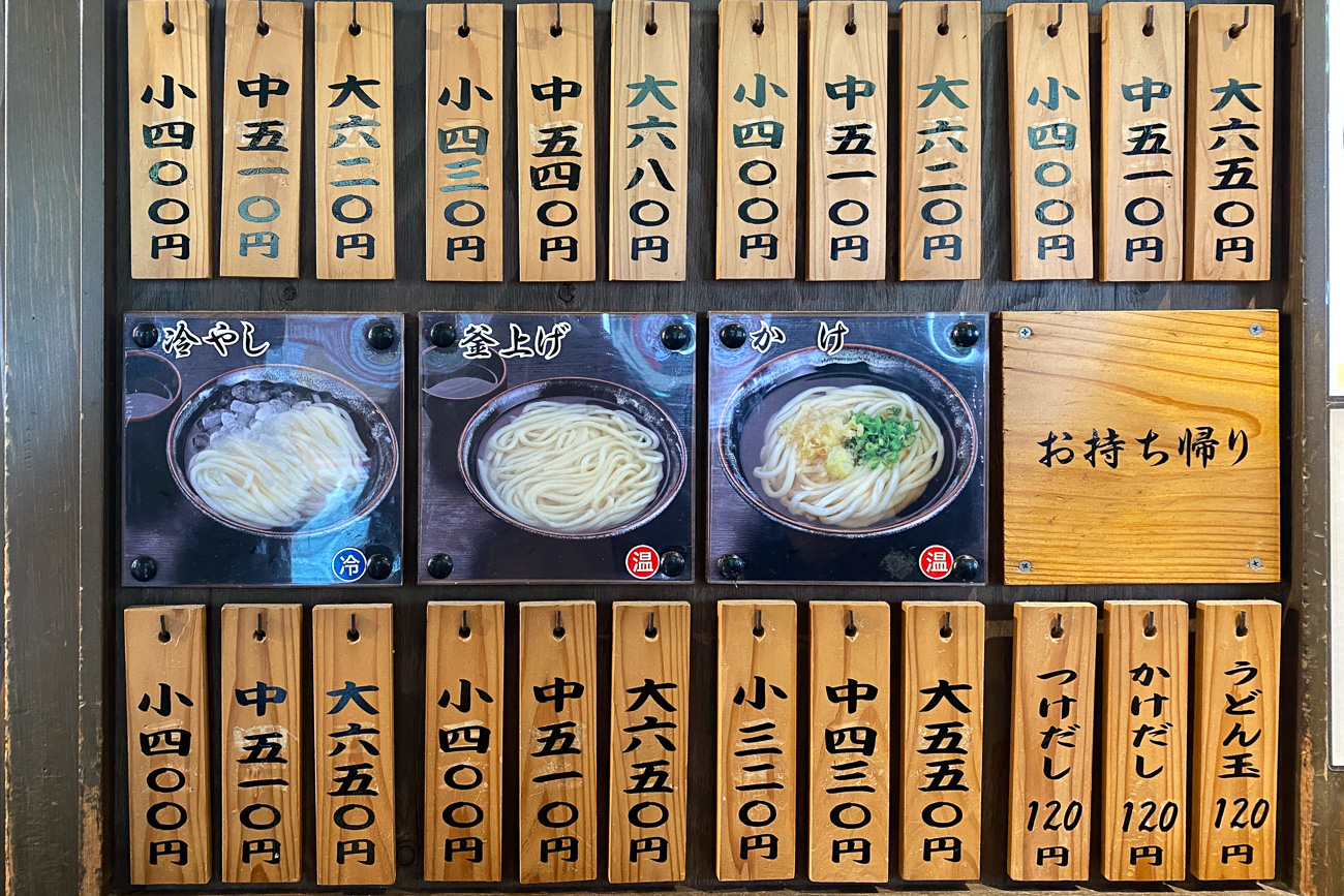 「麺や 宇多津店」のうどんメニュー